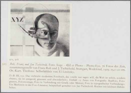 Wie der Konstrukteur, der Kopf und Hand – mithin Theorie und Praxis, Idee und Ausführung – gleichermaßen verpflichtet ist, sei auch der Fotograf ein Künstler im modernen Sinne, so die Position der Publikation. Das war zu Beginn des 20. Jahrhunderts keineswegs selbstverständlich, schien die Apparatur der Kamera doch zunächst die schöpferische Subjektivität des Urhebers in Frage zu stellen. Im Gegensatz zum mechanisch ausgelösten Bild der Fotografie schrieb man dem Zeichen- und Pinselstrich aus freier Hand die individuellen Charakteristika künstlerischer Autorschaft unmittelbar zu. Um auch den Fotografen als Künstler zu positionieren, bezog sich Roh im Vorwort des Buches mit El Lissitzkys Fotomontage auf den in erster Linie geistig arbeitenden oder am Reißbrett entwerfenden Künstler und berief sich dabei auf den von Gotthold Ephraim Lessing etablierten Topos vom »Künstler ohne Hände« (vgl. Franz Roh u. Jan Tschichold: Foto-Auge, Stuttgart 1929, S. 3). Eine nicht mehr von der manuellen Ausführung abhängige Kunst wird so zu einer zeitgemäßen Ausdrucksmöglichkeit, künstlerische Anschauung und Produktion werden auf diese Weise demokratisiert.