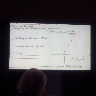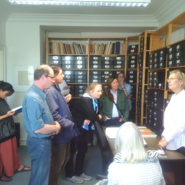 Der Besuch bot die Gelegenheit, das einzigartige Archiv von William S. Heckscher, Mitglied des Kreises um die Kulturwissenschaftliche Bibliothek Warburg vor ihrem Exil 1933, Schüler und enger Freund von Erwin Panofsky, mit seiner gewaltigen Korrespondenz und seine beeindruckenden Zettelkästen zu entdecken gemeinsam mit Karen Michels, die zusammen mit Charlotte Schoell-Glass und Elizabeth Sears seinerzeit die Einrichtung des Archivs im Warburg-Haus mitbetreut hatte und Heckscher persönlich gut kannte. Zum Einstieg wurde gemeinsam im Lesesaal der Film William Heckscher. Archiv eines Kunstwissenschaftlers (2017, 20:14 min.) angesehen. Der Film von Caroline Maaß mit Realisationen und Animationen von Daniel Maaß entstand im Rahmen des Seminars “Verzettelt und vernetzt. William S. Heckscher und Erwin Panofsky” im Wintersemester 2016/17 am Kunstgeschichtlichen Seminar der Universität Hamburg.