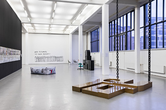 Zu sehen sind Werke von Monica Bonvicini, Sigmar Polke, Tobias Zielony, Neïl Beloufa, Benedikte Bjerre, Jan Peter Hammer, Thomas Hirschhorn, Sven Johne, Los Capinteros, Henrike Naumann, Driss Ouadahi, Joe Scanlan, Andrzej Steinbach, Anna Witt, Ariel Reichman, Katie Holten, Harun Farocki/Antje Ehmann und Straub/Huillet.