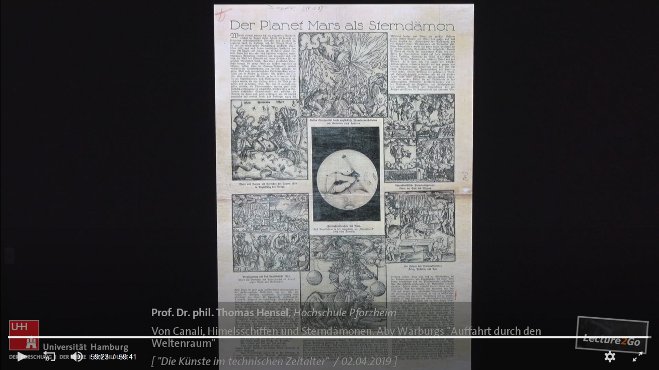 Im Rahmen der Vortragsreihe zum Schwerpunktthema »Die Künste im technischen Zeitalter« anlässlich des Universitätsjubiläums 2019 sprach Thomas Hensel am Dienstag, den 2. April 2019 um 19 Uhr im Warburg-Haus über Aby Warburgs Beschäftigung mit Luftschiffen im Kontext der historischen Mars-Erforschung und des zeitgenössischen Films vor dem Hintergrund der weltpolitischen Ereignisse des Ersten Weltkrieges.