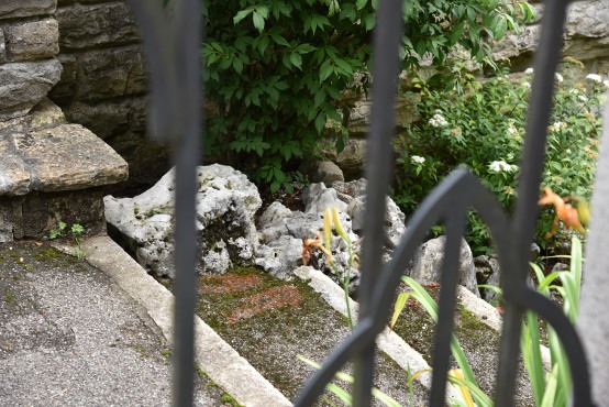 阶前的崎岖山石颇为奇怪,到有几分东方造园的意境,不知是原有的设计还是后人加上。整个设计虽然浑然一体,但却难以寻觅我们熟悉的柯布的影子。反倒是如今基地隔壁的建成的现代建筑直接将混凝土毛糙表面暴露在外,道有几分粗野主义的感觉,让我们一开始也险些产生误解。