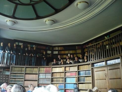 Nicht von ungefähr erinnert der berühmte elliptische Lesesaal Aby Warburgs an Vorläufer in der profanen Architektur: Antike Theater. Warburgs Lebensthema, das Nachleben der Antike, schien plötzlich greifbar manifest im Raum, mit den stimmgewaltigen jungen Sängerinnen und Sängern schien auch der Chor der antiken griechischen Tragödie Gestalt anzunehmen. Nach diesem sinnlichen, fassbaren, überwältigend schönen Konzert galt allen Mitwirkenden stürmischster Applaus. Bei einem anschließenden Empfang setzten sich die sofort einsetzenden zahlreichen angeregten Unterhaltungen und Diskussionen mit den Sängerinnen und Sängern und Mitwirkenden fort.