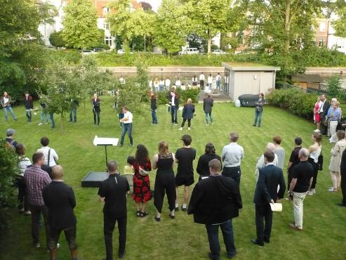 Am Donnerstag, den 20. Juni 2019 gab es im Warburg-Haus die Gelegenheit zu einer ganz besonderen klanglich-musikalischen Erfahrung im Rahmen einer echten Premiere: Erstmals fand im Warburg-Haus ein Chorkonzert statt. Und das nicht nur im berühmten Lesesaal, sondern aufgrund des besonderen Anlasses und der besonderen Natur der Stücke auch im Garten.