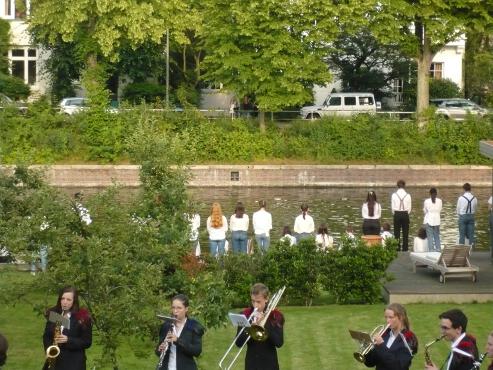 An einem Tag mit zunächst wechselhaftem Wetter kam pünktlich um 19 Uhr alles zusammen: Die Sonne vertrieb rechtzeitig die Regenwolken, so dass sich die Besucher im Garten zum Chorkonzert vor der wunderbaren Kulisse des Alsterlaufes und der vorbeiziehenden Alsterdampfer und Ruderer einfinden konnten.