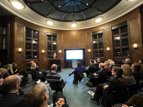 Sehr herzlich luden die Aby-Warburg-Stiftung und die Universität Hamburg am Montag, 11. Dezember 2023 um 19.00 Uhr ins Warburg-Haus ein zur gemeinsamen Verleihung der Martin Warnke-Medaille an Valeska von Rosen, Wissenschaftspreisträgerin der Aby-Warburg-Stiftung 2023.