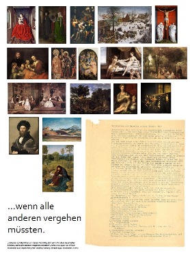 Während einer Besprechung zum möglichen Thema seiner Dissertation brachte Heckscher Panofsky im Oktober dazu, eine Art Bestenliste der Malerei aufzustellen. Heckscher tippte seine Erinnerungen an das Gespräch sorgfältig ab und überlieferte uns so auch die fünfzehn Gemälde, von denen “Panofsky sich wünscht, dass sie erhalten blieben, wenn alle anderen vergehen müssten“ – wir haben diese als kleine digitale Versionen zum Scan des Dokuments hinzugefügt.
