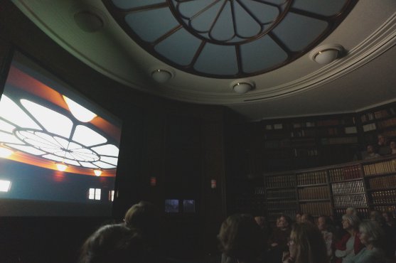 Es war ein besonderes Ereignis, den Film, der im Dezember 2017 auf arte Premiere hatte und u.a. zu Jahresbeginn im Louvre im Rahmen der 11. Internationalen Kunstfilmtage und im Februar im Deutschen Historischen Institut Paris vorgestellt wurde, im Lesesaal des Warburg-Hauses zu sehen. Für den Film wurden die bisher umfangreichsten Aufnahmen von Dokumenten und Material in Warburgs Archiven im Warburg Institute, London, unternommen. Er entstand aber auch maßgeblich auch im Warburg-Haus Hamburg. Das Publikum konnte eine ganz besondere Atmosphäre der Mise en abyme im berühmten elliptischen Lesesaal der Kulturwissenschaftlichen Bibliothek Warburg erfahren.