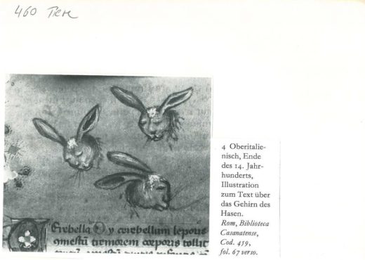 Illustration zu einem Text über das Gehirn des Hasen, spätes 14. Jh., OberitalienAus unserem Bildindex zur politischen Ikonographie, 460/Tiere
