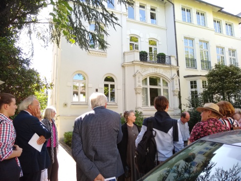 Nach einer ausführlichen Einführung im Lesesaal in Leben und Werk Ernst Cassirers und zu den Grundzügen seiner Kulturphilosophie begab sich die Gruppe in Richtung der Außenalster in die Blumenstraße 26, dem Wohnhaus Ernst Cassirers und seiner Frau Toni in Hamburg bis zu ihrem Gang ins Exil 1933.