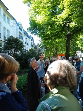 Am Freitag, den 7. Juni versammelten sich 30 Personen im Warburg-Haus zu einem thematischen Stadtspaziergang mit Birgit Recki, Direktorin des Warburg-Hauses, auf den Spuren von Ernst Cassirer und der Kulturwissenschaftlichen Bibliothek Warburg: Cassirer, einer der letzten Universalgelehrten des 20. Jahrhunderts, war einer der ersten 1919 an die neu gegründete Universität Hamburg berufenen Professoren und 1929/30 Rektor der Universität. Nach der Reichstagswahl im Januar 1933 gingen Ernst Cassirer und seine Frau Toni im März 1933 ins Exil nach Schweden, wo er an der Universität Göteborg lehrte.