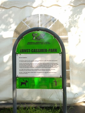 Von dort wanderte die Gruppe durch das Alstervorland, vorbei an der Warburgstraße, zum Hauptgebäude der Universität an der Moorweide und einer daneben gelegenen kleinen Grünfläche an der Schlüterstraße, die den Namen Ernst-Cassirer-Platz trägt. Ein Hinweisschild verweist dort auf Cassirer und darauf, dass der größte Hörsaal im Hauptgebäude seit 1999 nach ihm benannt ist.
