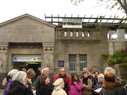 Die Gruppe wanderte daraufhin weiter zur 1912 eröffneten U-Bahn-Station Kellinghusenstraße auf der ehemaligen Ringbahn der Hamburger Hochbahn und dem gegenüberliegenden, 1914 eröffneten Holthusenbad, dessen äußere Gestaltung auf Fritz Schumacher zurückgeht und zahlreiche Parallelen zur äußeren Gestalt des von Schumachers Schüler Gerhard Langmaack errichteten Warburg-Hauses aufweist.