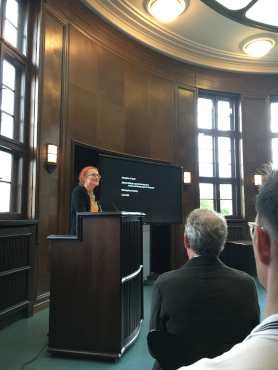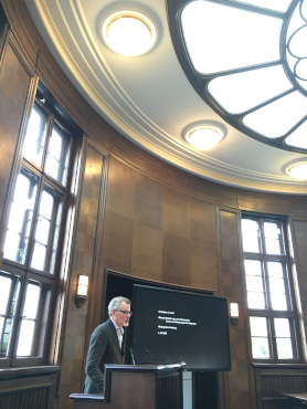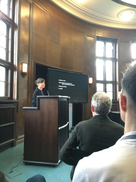 Nach einer Begrüßung durch Cornelia Zumbusch, federführende Direktorin des Warburg-Hauses 2023-24, hielt Margit Kern, Kunstgeschichtliches Seminar der Universität Hamburg, als Vorsitzende des wissenschaftlichen Beirats der Aby-Warburg-Stiftung die Laudatio.