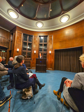 Im Namen der Vorsitzenden der Aby-Warburg-Stiftung Katharina Fegebank, Zweite Bürgermeisterin der Freien und Hansestadt Hamburg, lud das Warburg-Haus am Donnerstag, 5. Dezember 2024, um 19.00 Uhr, feierlich zum Vortrag des Wissenschaftspreisträgers der Aby-Warburg-Stiftung 2024, Valentin Groebner:
