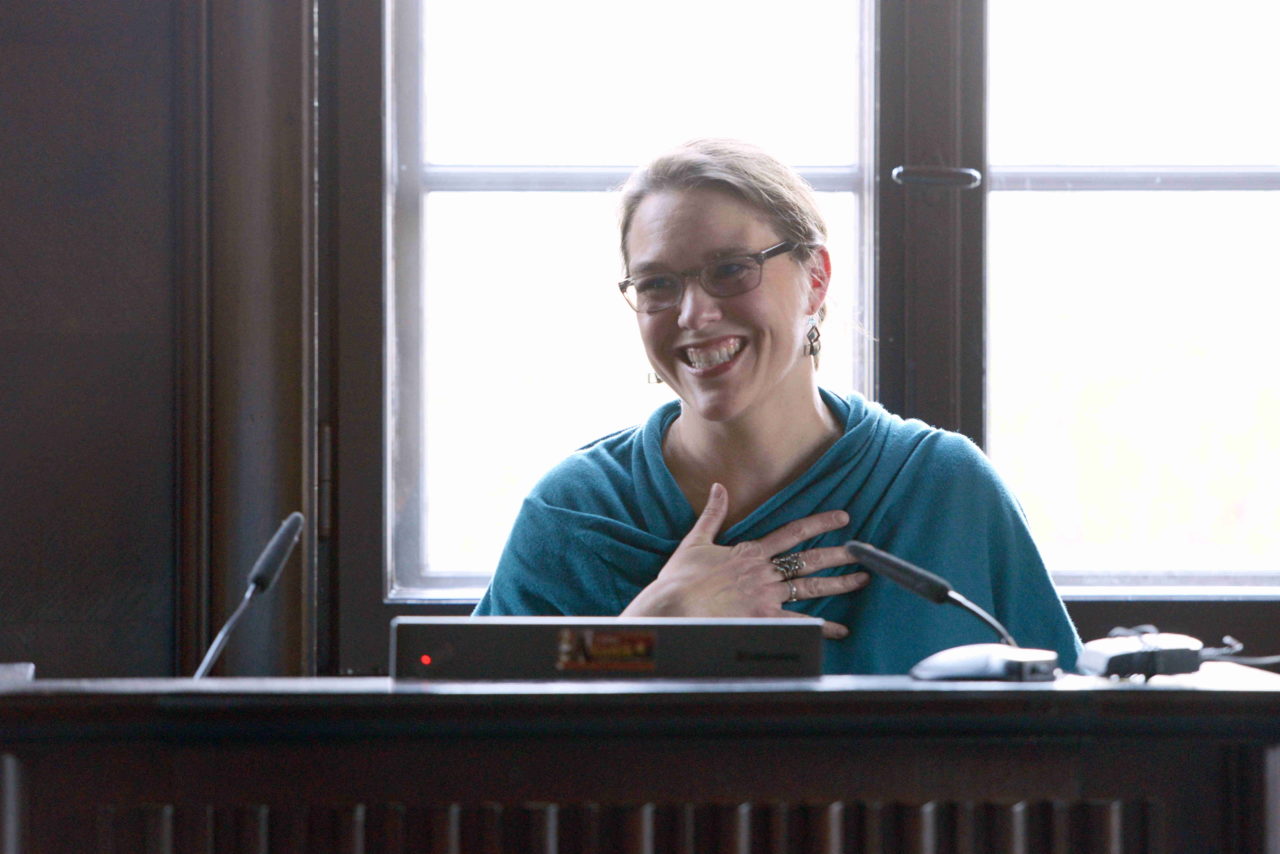 Wissenschaftspreisträgerin Jacqueline Jung nimmt in ihrem Vortrag am 5.4.2017 im Warburg-Haus eine Fotografie aus den 1920er Jahren zum Ausgangspunkt ihrer Untersuchungen zum sogenannten Gerichtspfeilers oder Engelspfeilers im Südquerhaus des Straßburger Doms. Sie zeigt Zusammenhänge zwischen medialer Repräsentation und der Rezeption des Pfeilers in der Forschung auf und entwickelt eine alternative Formen der Wahrnehmung und Beschreibung, die auch die Position und Bewegung des Betrachters im Raum während der Lithurgie berücksichtigen, aber auch auf Ikonographie und Materialität des Pfeilers eingehen. Jung erschließt uns die gotische Skulptur auf diese Weise als höchst komplexen „Gedankenpfeiler“, ja als ein Denkwerkzeug und spannt zum Abschluss ihres Vortrags einen Bogen zu Warburgs Praxis in der Kulturwissenschaftlichen Bibliothek.
